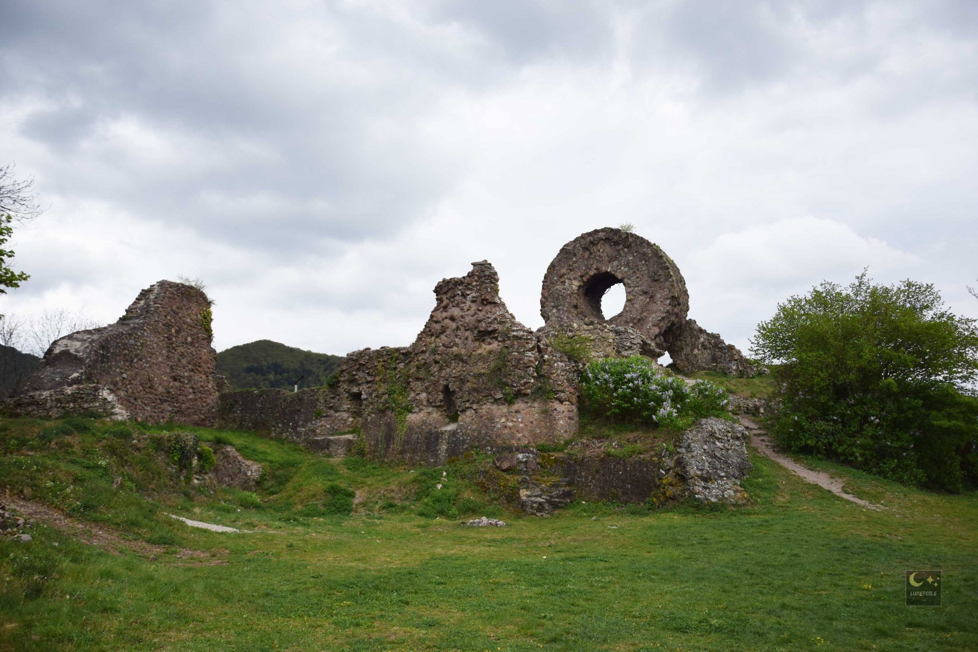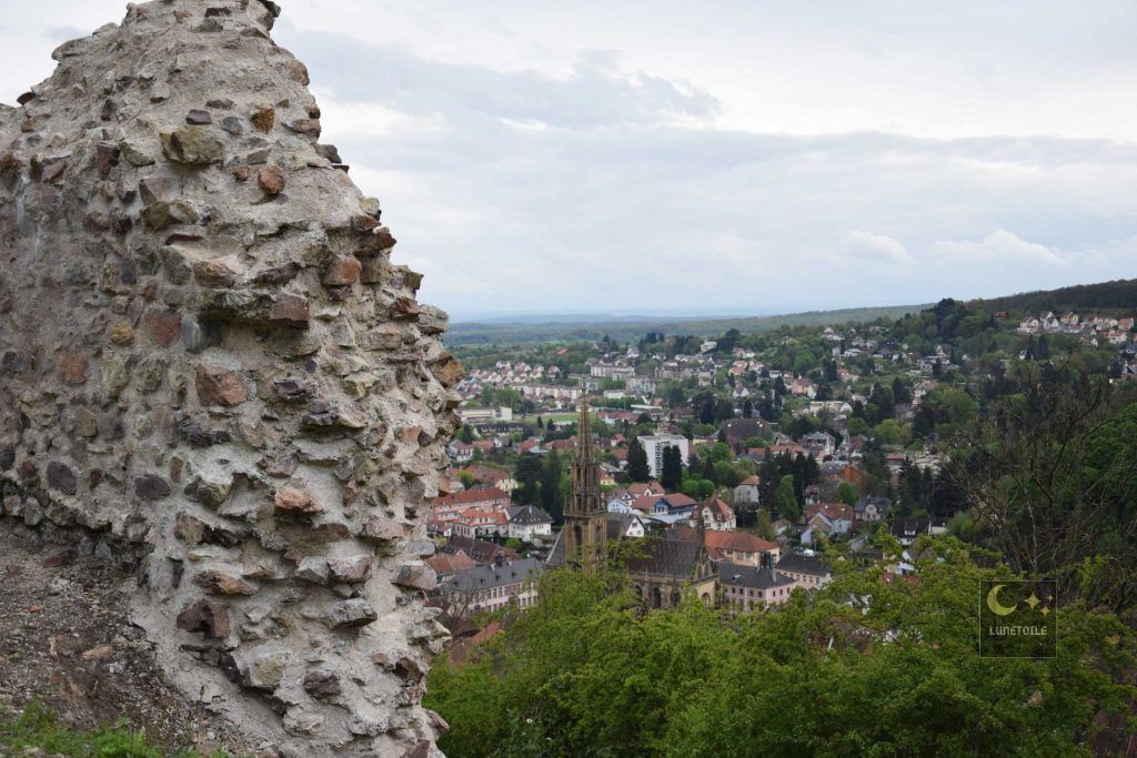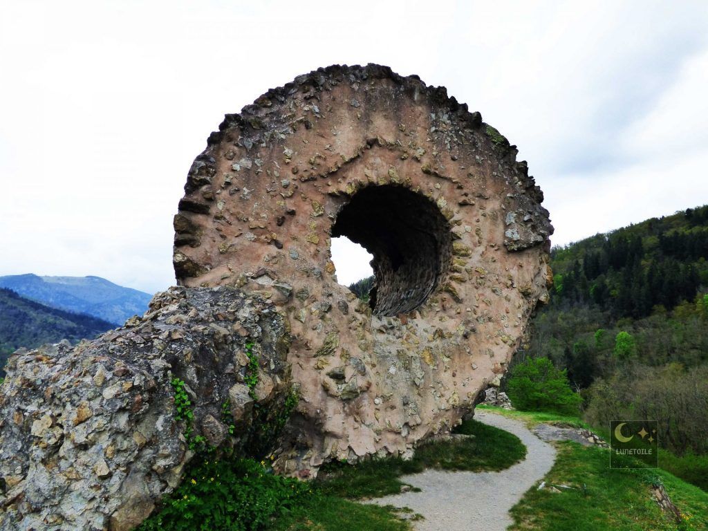 Lorsqu’on s’approche de la petite ville de Thann en Alsace, on aperçoit un drôle de monument circulaire sur le sommet d’une montagne (le Schlossberg) surplombant le vieux bourg. Ça intrigue, on souhaite en savoir plus et la curiosité nous pousses jusqu’au pied du sommet (On reviendra sur la ville médiéval de Thann un peu plus tard).