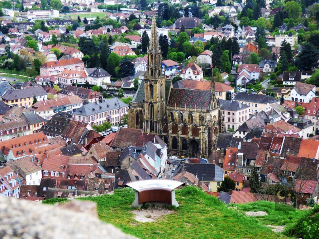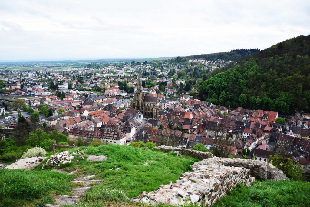 Vue sur Thann et sa collégiale depuis le château :