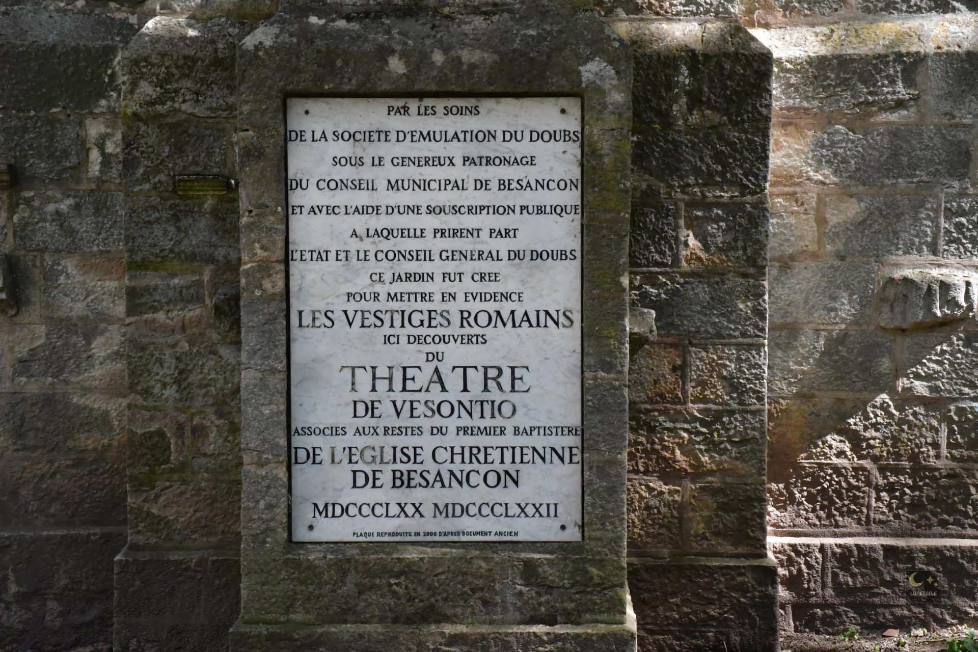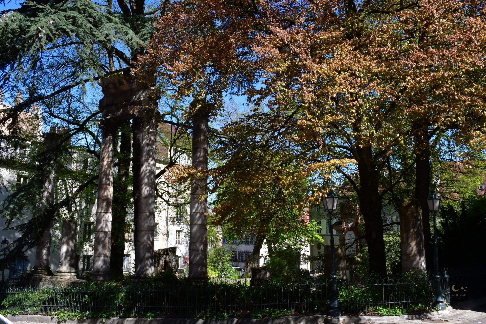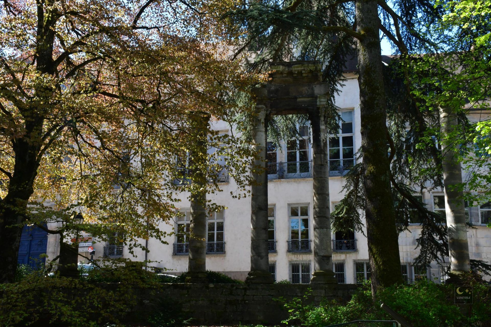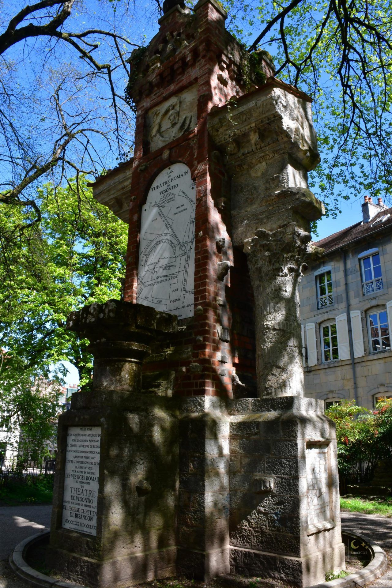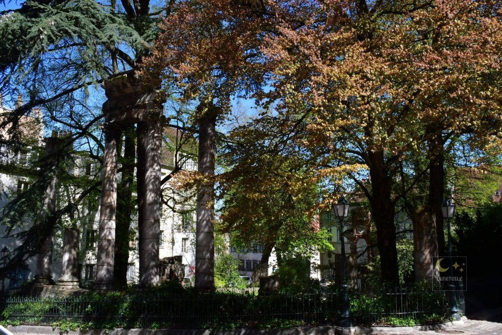 Situé rue de la Convention, dans le quartier historique Saint-Jean de Besançon, le square Castan constitue l’un des rares espaces urbains où l’on peut appréhender, en plein air et de manière directe, la superposition des occupations humaines depuis l’Antiquité romaine jusqu’à la Révolution française. D’une superficie modeste d’environ 1 100 m², ce site concentre pourtant une densité archéologique et documentaire remarquable. Il est encadré au nord-est par la Porte Noire, arc de triomphe érigé vers 175 ap. J.-C. sous l’empereur Marc Aurèle, et se trouve à quelques dizaines de mètres du tracé du cardo maximus de Vesontio, l’actuelle Grande Rue.