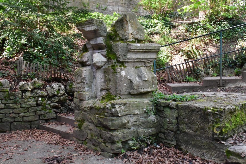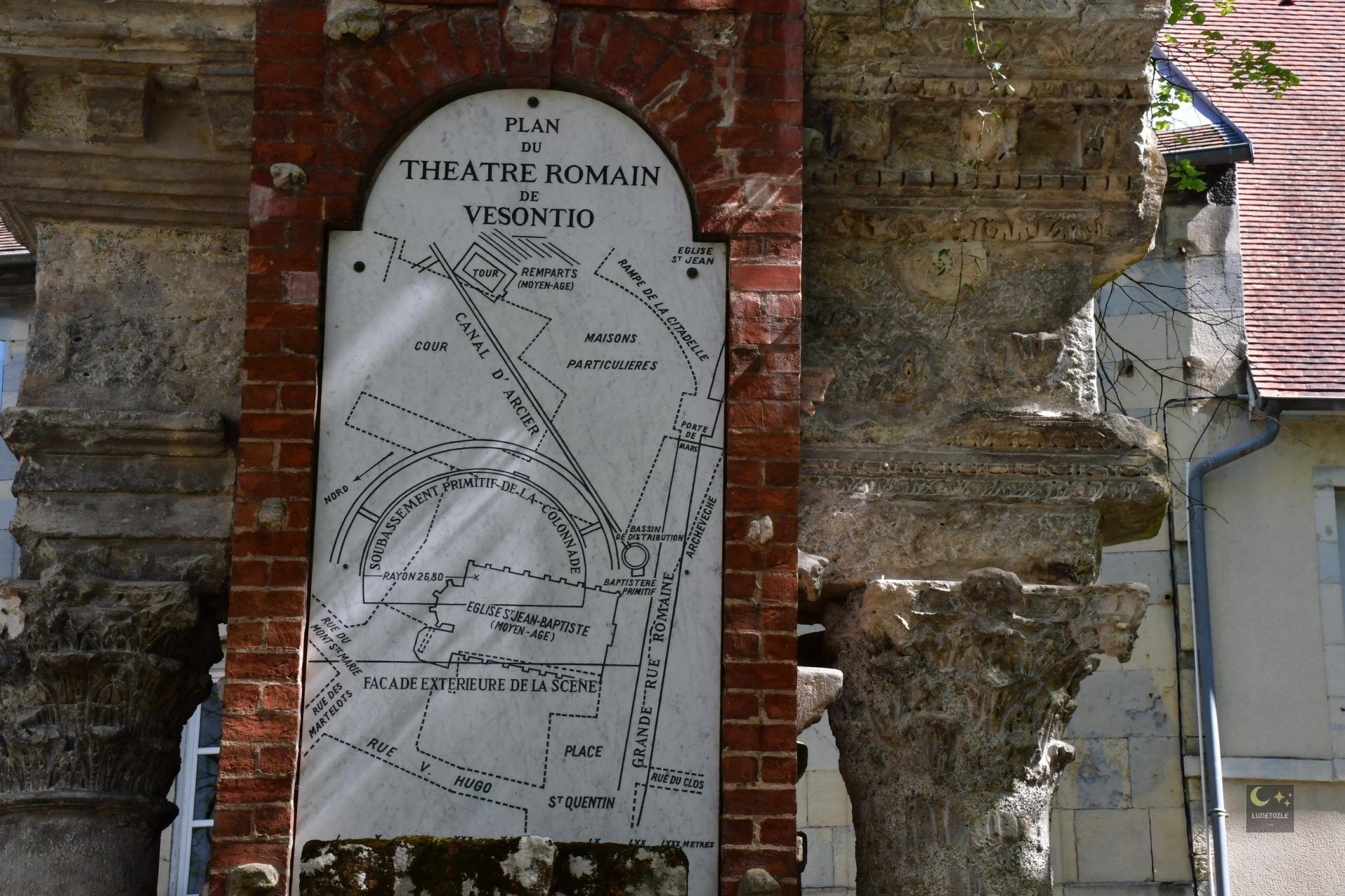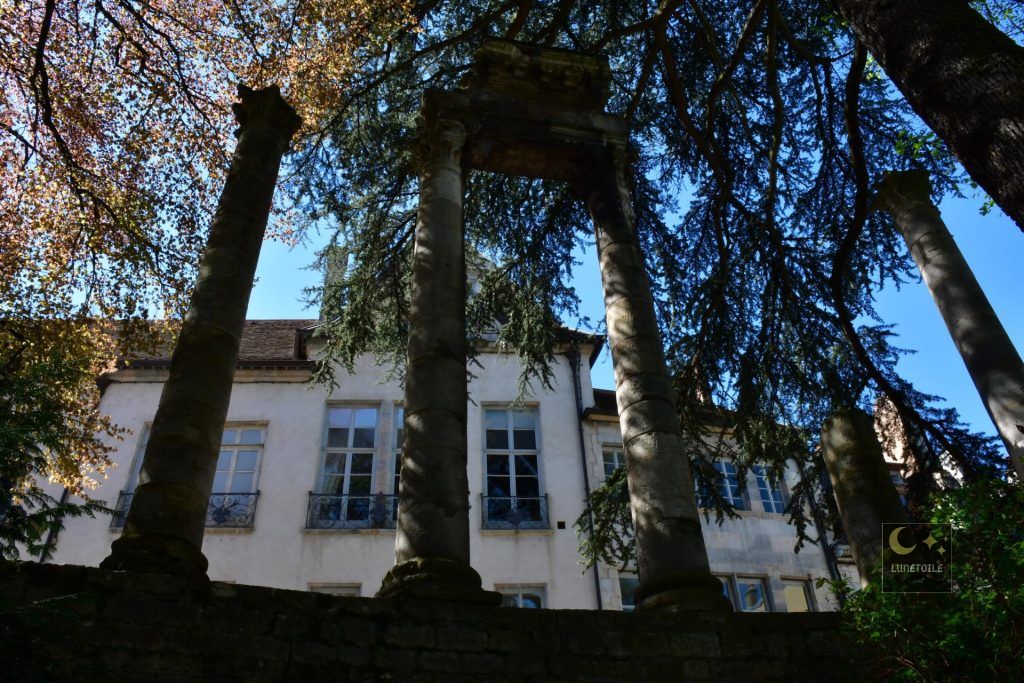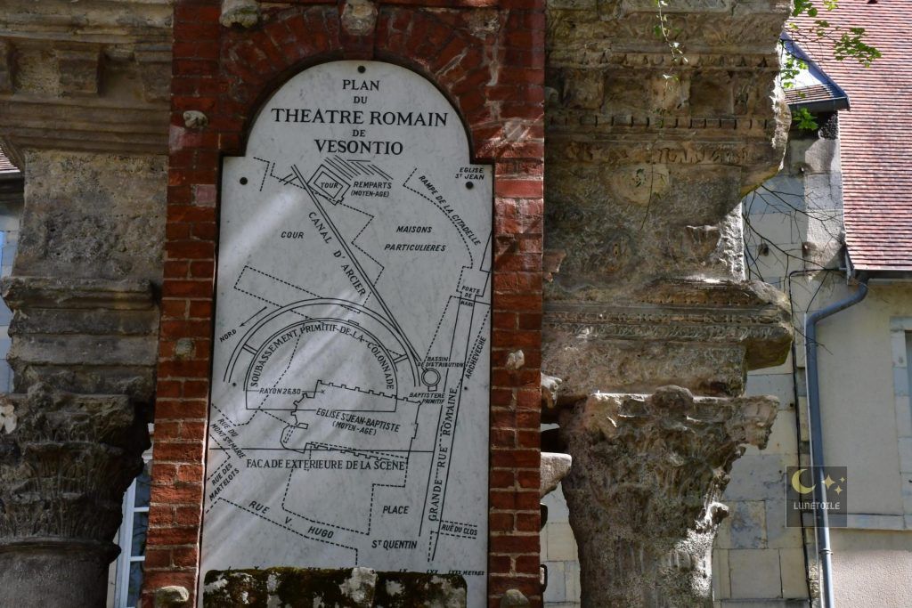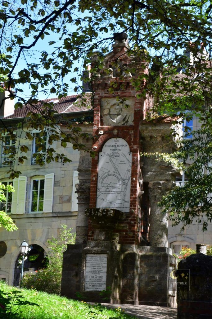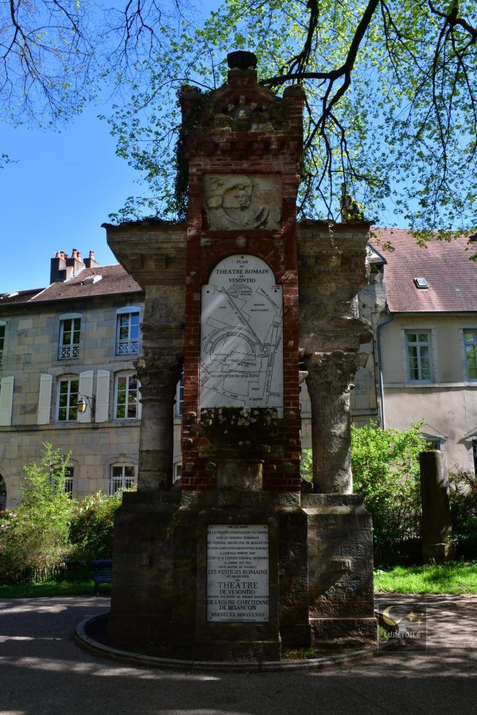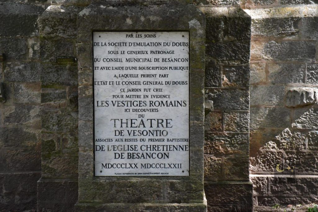 Parmi les structures dégagées lors des fouilles de 1870, le bassin de distribution des eaux, ou castellum divisorium, constitue un témoignage technique de première importance. Ce bassin circulaire d’environ 5 mètres de diamètre représentait le point terminal de l’aqueduc d’Arcier, infrastructure hydraulique d’un peu moins de 11 kilomètres reliant les sources d’Arcier, dans la commune de Vaire, à la cité de Vesontio.