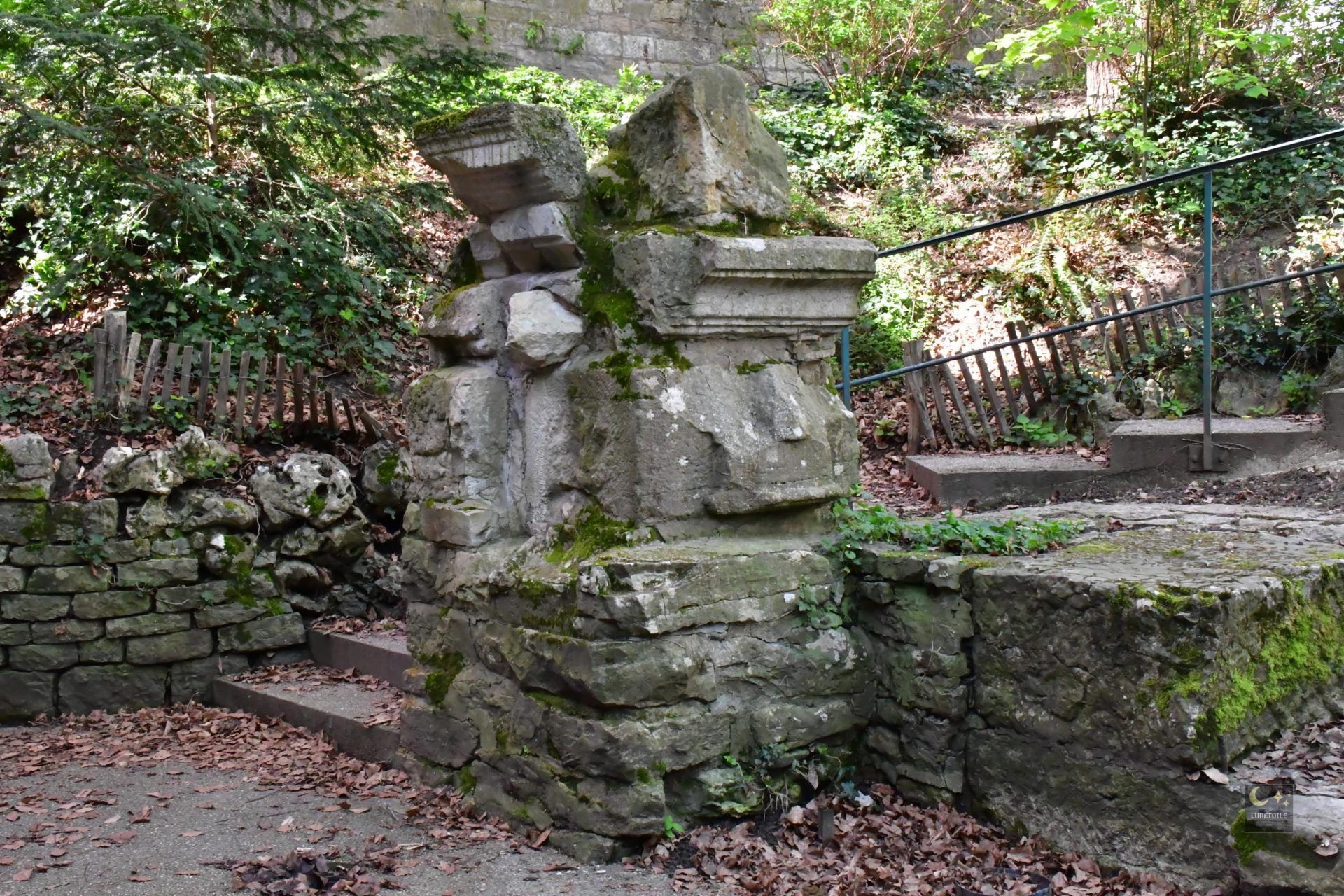 Le dispositif végétal qui enveloppe les vestiges n’est pas le fruit du hasard. Conçu par l’architecte Alfred Ducat avec le concours du paysagiste franc-comtois Brice Michel, le jardin fut ouvert au public en 1874. Sa composition s’inscrit dans la perspective de la Porte Noire et obéit à une logique à la fois esthétique et pédagogique : les fragments antiques sont disposés et mis en scène pour guider le regard du visiteur, selon un principe propre aux jardins archéologiques à l’anglaise du XIXe siècle. L’ensemble de l’œuvre paysagère constitue une réalisation cohérente, intégrant ferronnerie, lampadaires et tracés de circulations qui furent restaurés lors d’une campagne de réhabilitation menée entre 2004 et 2006, restituant au site son état du XIXe siècle.