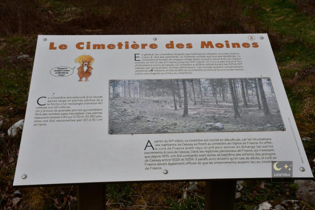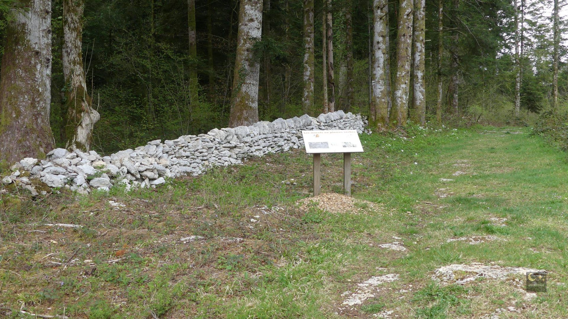 Pour desservir la Grange de Cessay, une bretelle fut aménagée depuis le chemin de Boujailles à Dompierre, traversant la pâture de Cessay. Ce chemin, qui longeait la source des Moines, était emprunté par de lourds chariots chargés de marchandises. Afin d’éviter que leurs roues ne dérapent, des ornières furent taillées directement dans la roche, un ingénieux aménagement dont vous pouvez encore observer les traces tout au long de ce sentier, témoins silencieux d’une activité intense et révolue.