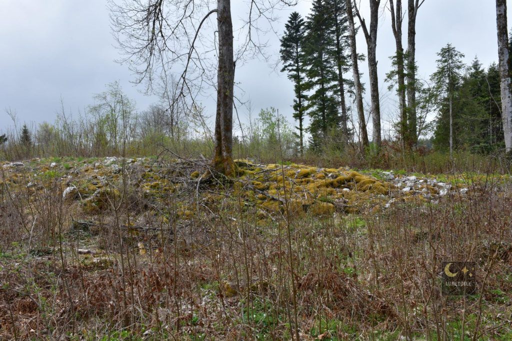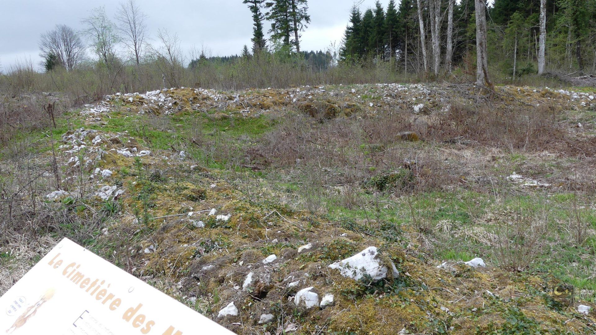 Le lieu est sobre mais éloquent. Un muret de pierres sèches, assez large, dessine un rectangle d’environ 40 mètres sur 25. À l’intérieur, de grandes dalles de pierre affleurent le sol : sans inscription, elles mesurent pourtant environ 1,70 m sur 0,70 m, dimensions caractéristiques de sépultures. En l’espace de cent cinquante ans, vingt à trente centimètres de terre les ont peu à peu recouvertes, comme si la forêt cherchait à garder jalousement ce secret.