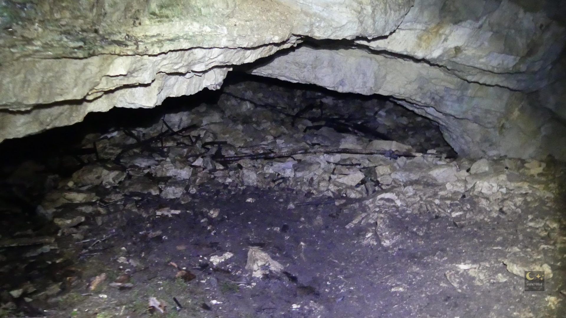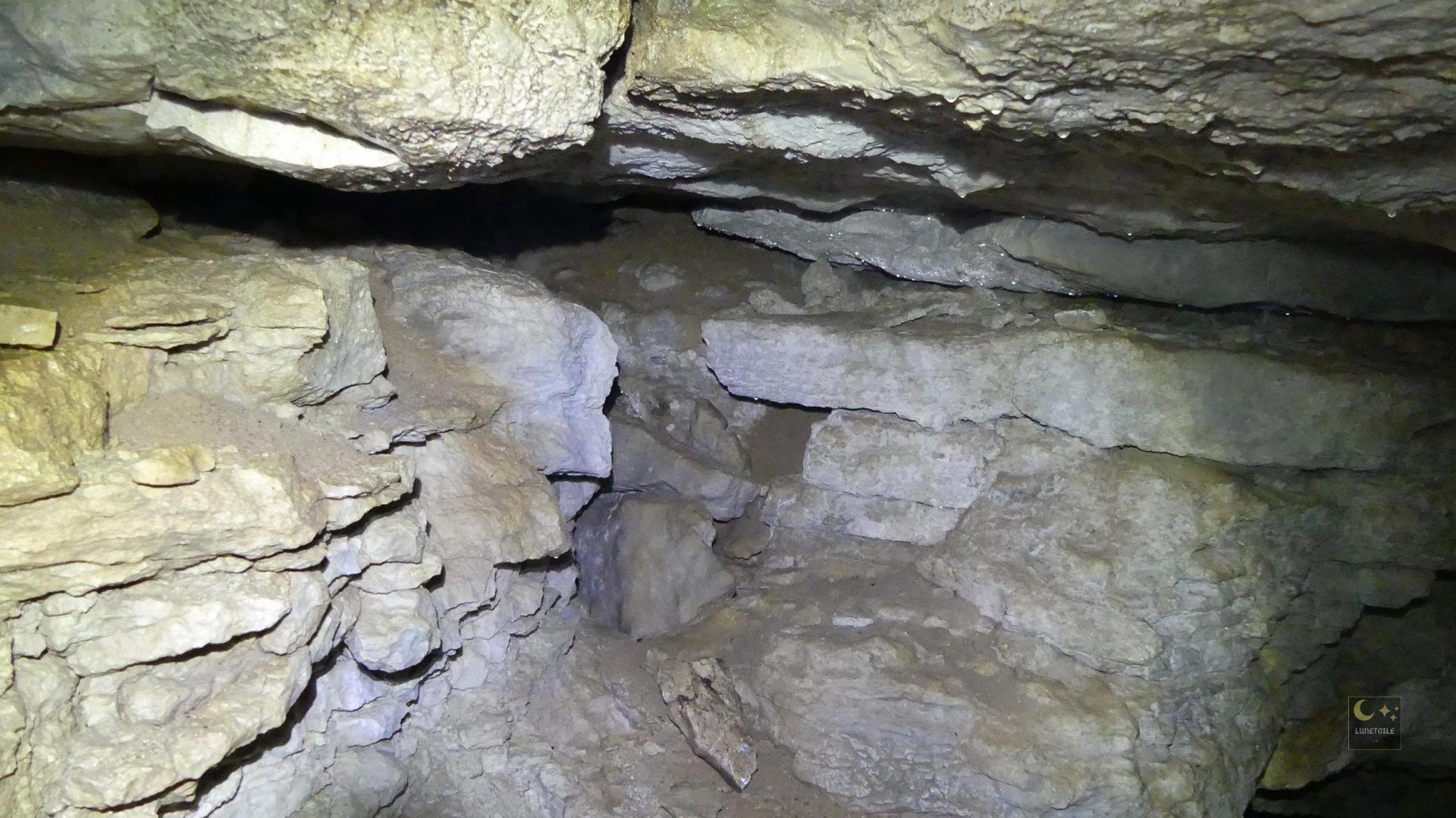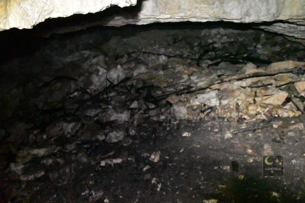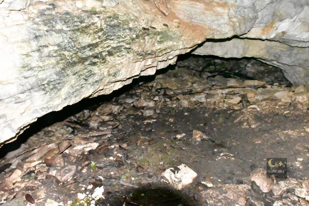 La cavité se compose de deux salles successives : une première salle de 10 m de long, 4,5 m de large et 1,70 m de hauteur, avec une cheminée de 2,5 m, suivie d’une deuxième salle de 8 m de long, 6 m de large et 1,70 m de hauteur. À la recherche de l’eau fraîche, une centaine de personnes peuvent se tenir dans la cavité.