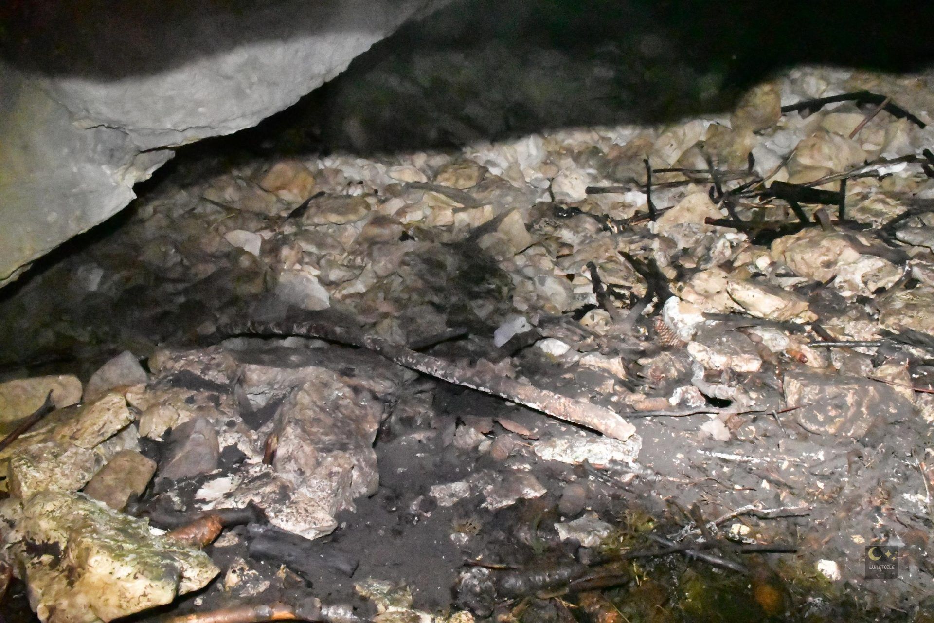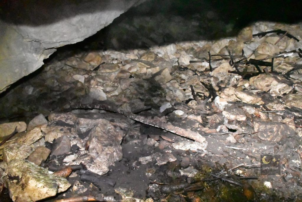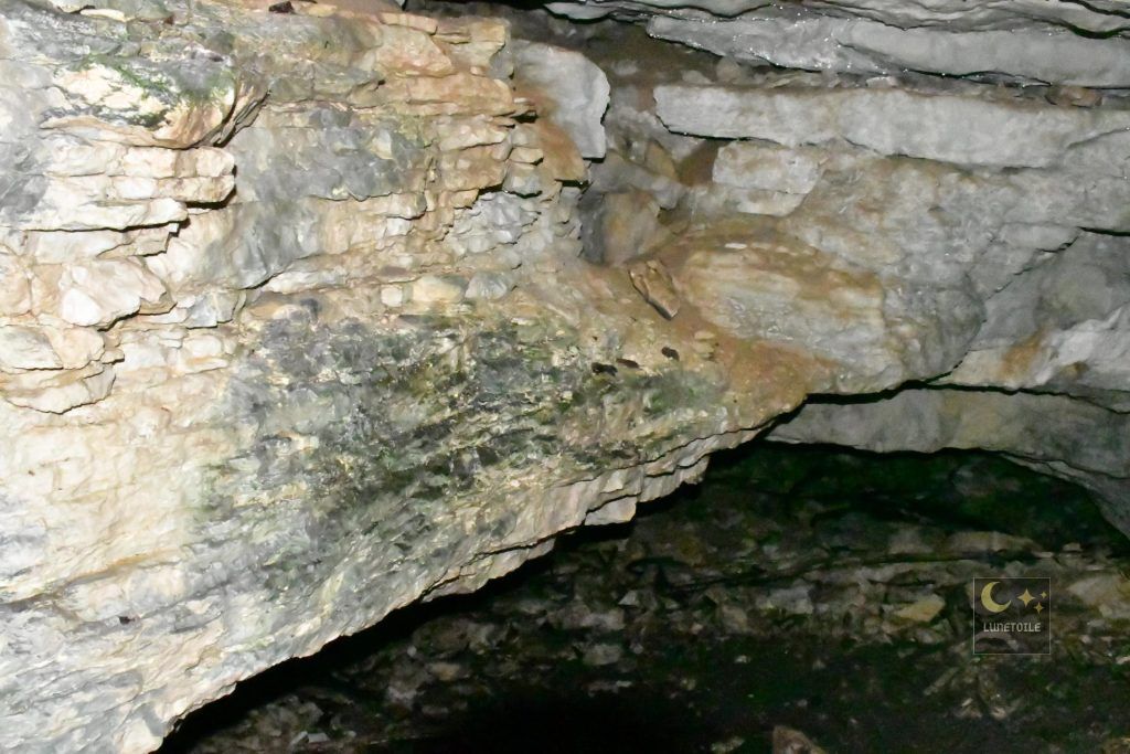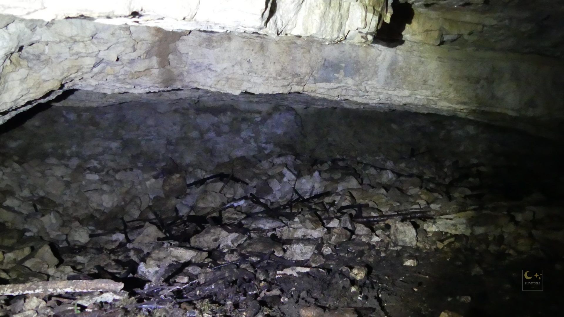 La cavité se compose de deux salles successives : une première salle de 10 m de long, 4,5 m de large et 1,70 m de hauteur, avec une cheminée de 2,5 m, suivie d’une deuxième salle de 8 m de long, 6 m de large et 1,70 m de hauteur. À la recherche de l’eau fraîche, une centaine de personnes peuvent se tenir dans la cavité.