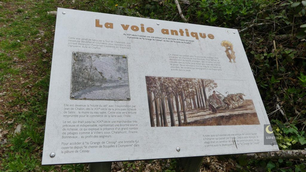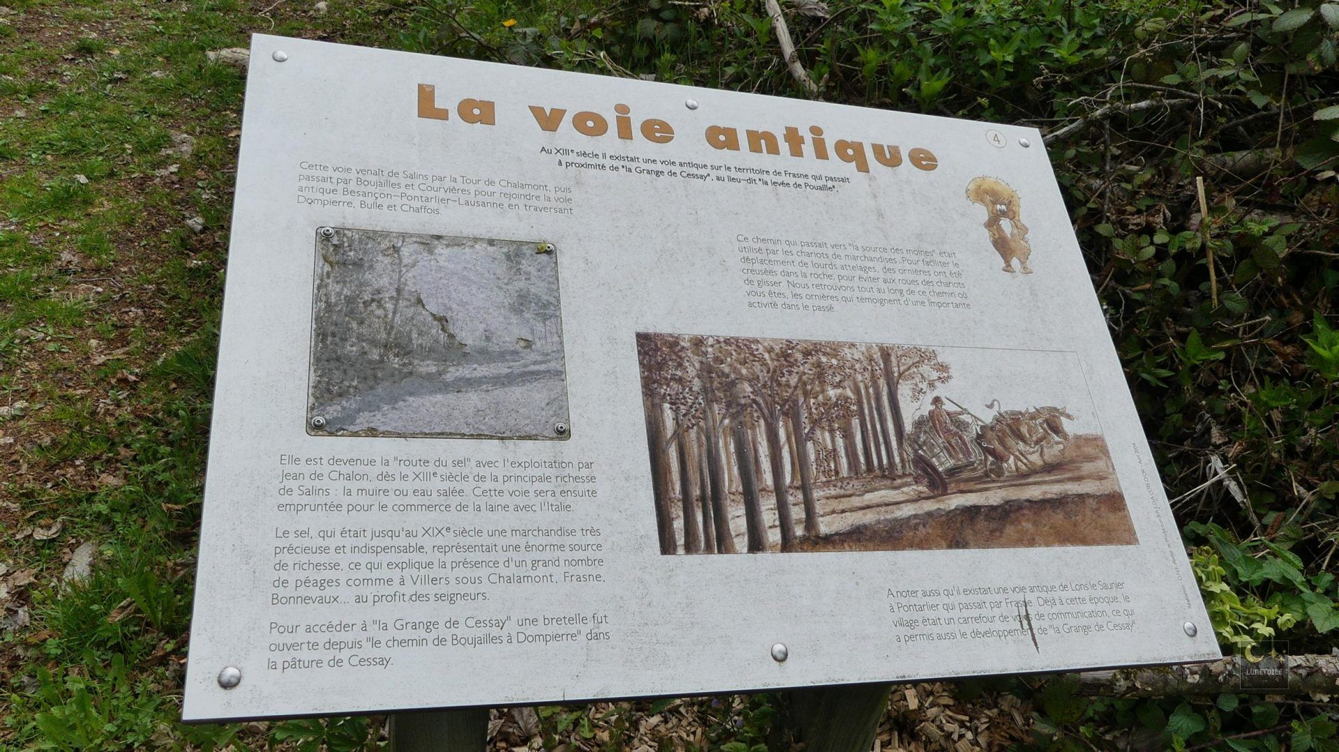Dès le XIII͏ᵉ siècle, une voie antique traversait le territoire de Frasne, frôlant la Grange de Cessay au lieu-dit « la Levée de Pouaille ». Venue de Salins par la Tour de Chalamont, elle cheminait à travers Boujailles et Courvières avant de rejoindre la grande voie antique Besançon–Pontarlier–Lausanne, en passant par Dompierre, Bulle et Chaffois.